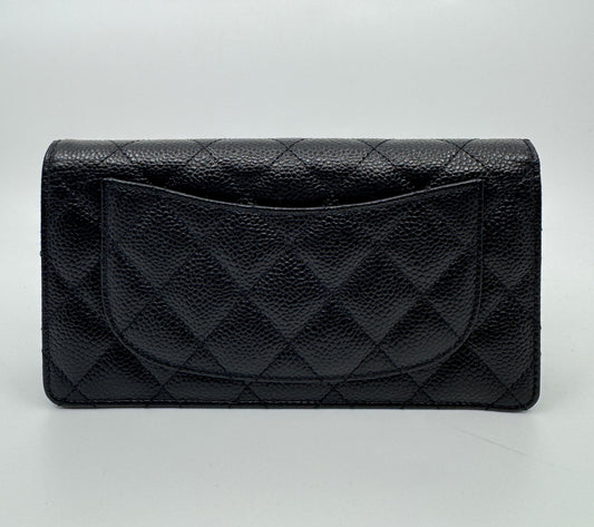 Sold outChanel Black Quilted Caviar Leather L Yen Continental Wallet